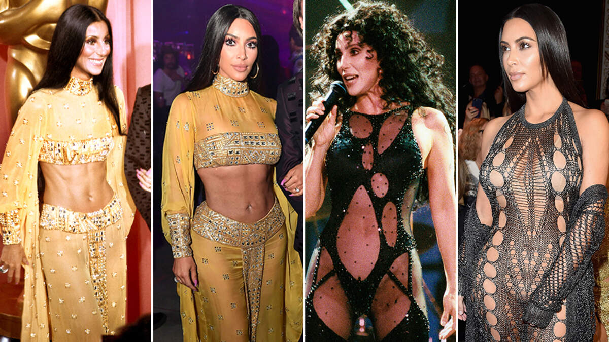 Kim Kardashian is a self-professed Cher fanatic, and it’s a love that’s been well documented over the years. The reality star has not only spoken often of her affection for Cher, but she’s dressed up as the “Believe” singer several times. Back in 2017 she and pal Jonathan Cheban dressed up as Sonny and Cher for Halloween, and earlier this year, Kim wore her hair — long and black — just like Cher’s when she went to see the music icon at her Las Vegas show in May. It’s a love that seems unending, so we decided to round up all the different times Kim has (knowingly or not!) channeled Cher – be it through fashion, hair or makeup. Scroll on to check out the similarities!